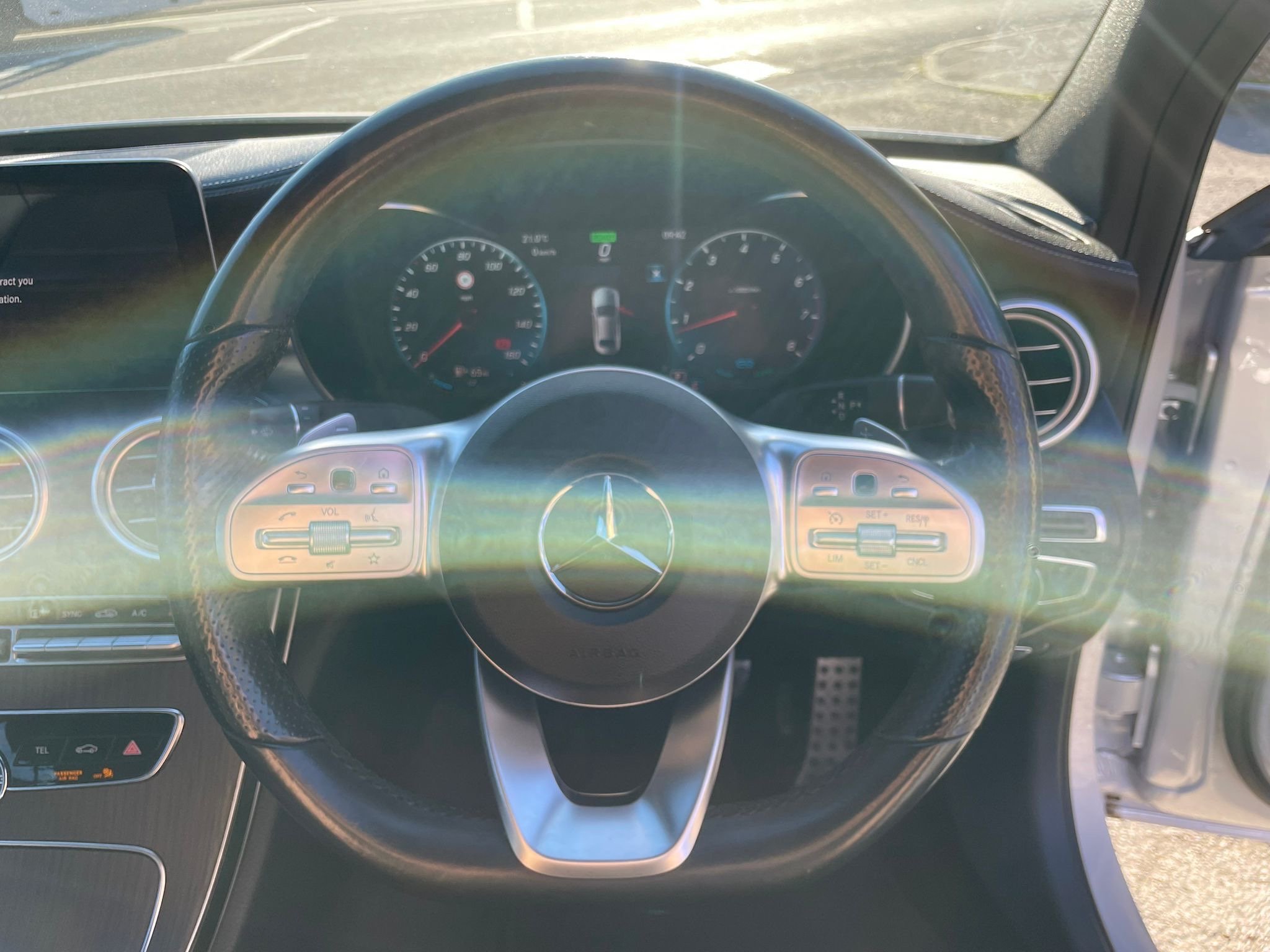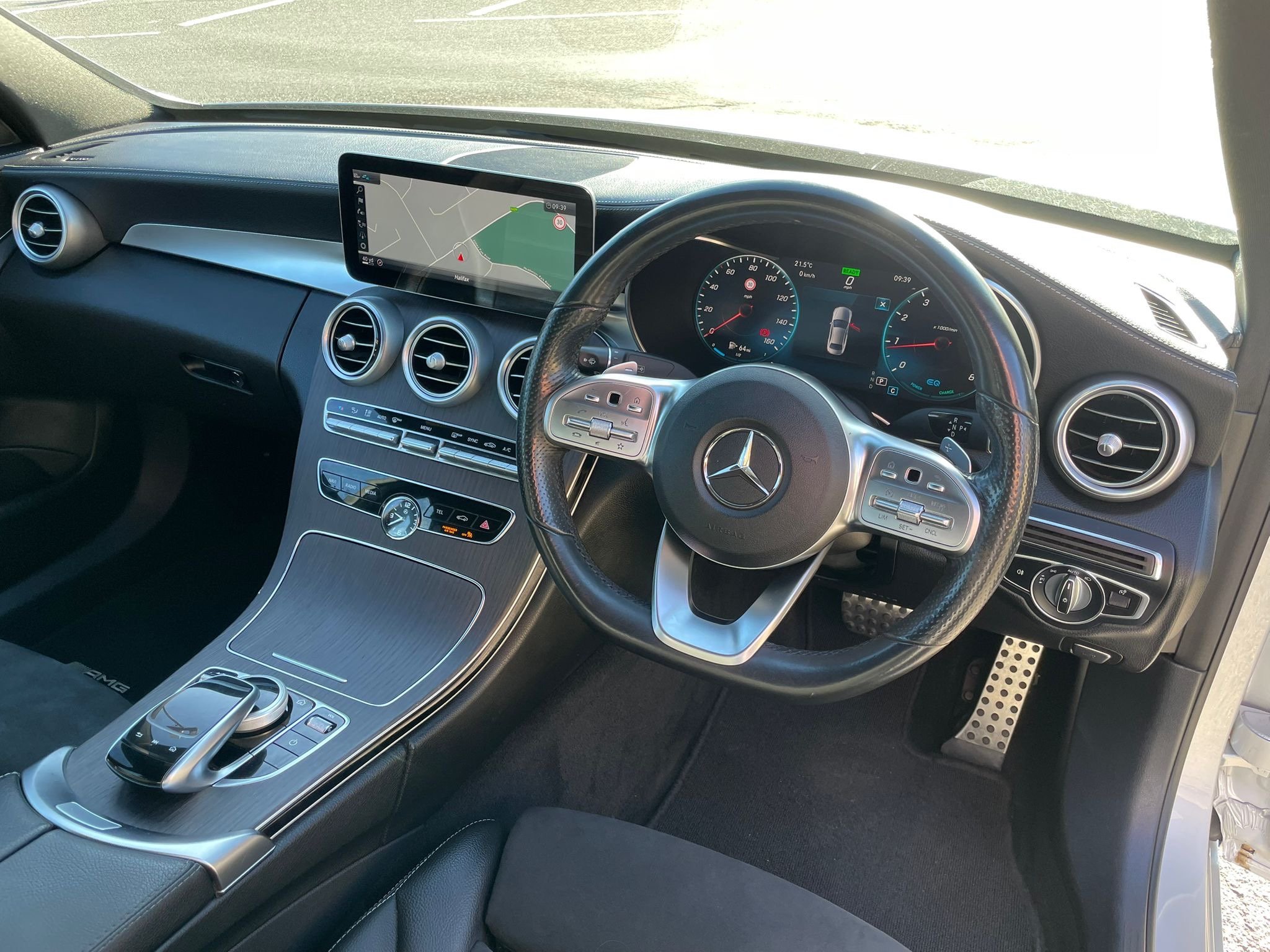 - Steering Wheel - 3-Spoke Multi-Function AMG in Black Nappa Leather with Flattened Bottom Section and Chrome Inserts and Perforated Leather in Grip Area